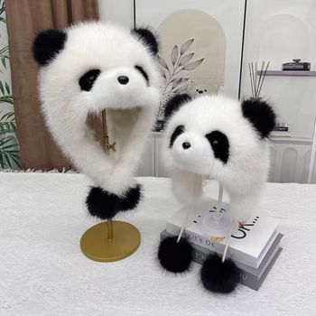 Otoño Invierno lindo sombrero de panda con bordado 3D protección de orejas felpa hecho a mano estilo personalizado personalización al por mayor