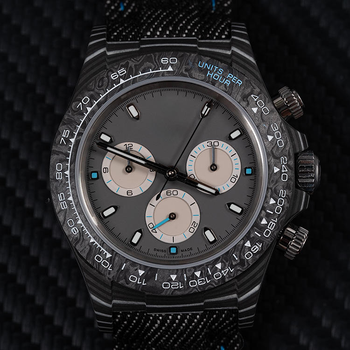 लक्जरी 4130 आंदोलन पुरुष यांत्रिक घड़ी कार्बन फाइबर डायल कस्टम खेल मॉडल 22 मिमी नायलॉन पट्टा और सूचक डिस्प्ले के साथ कस्टम खेल मॉडल